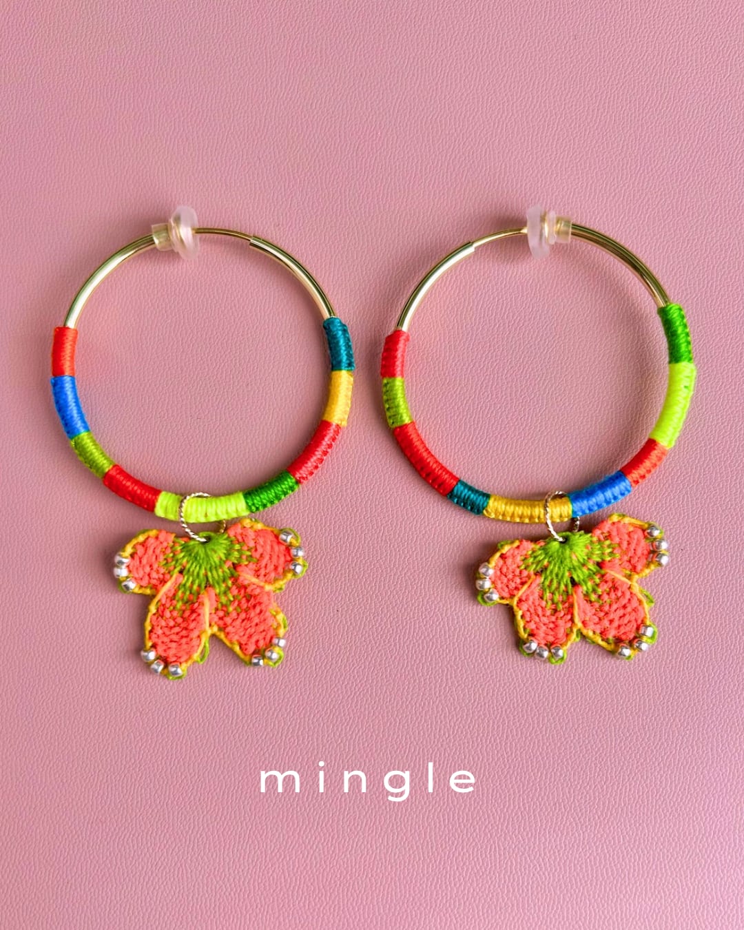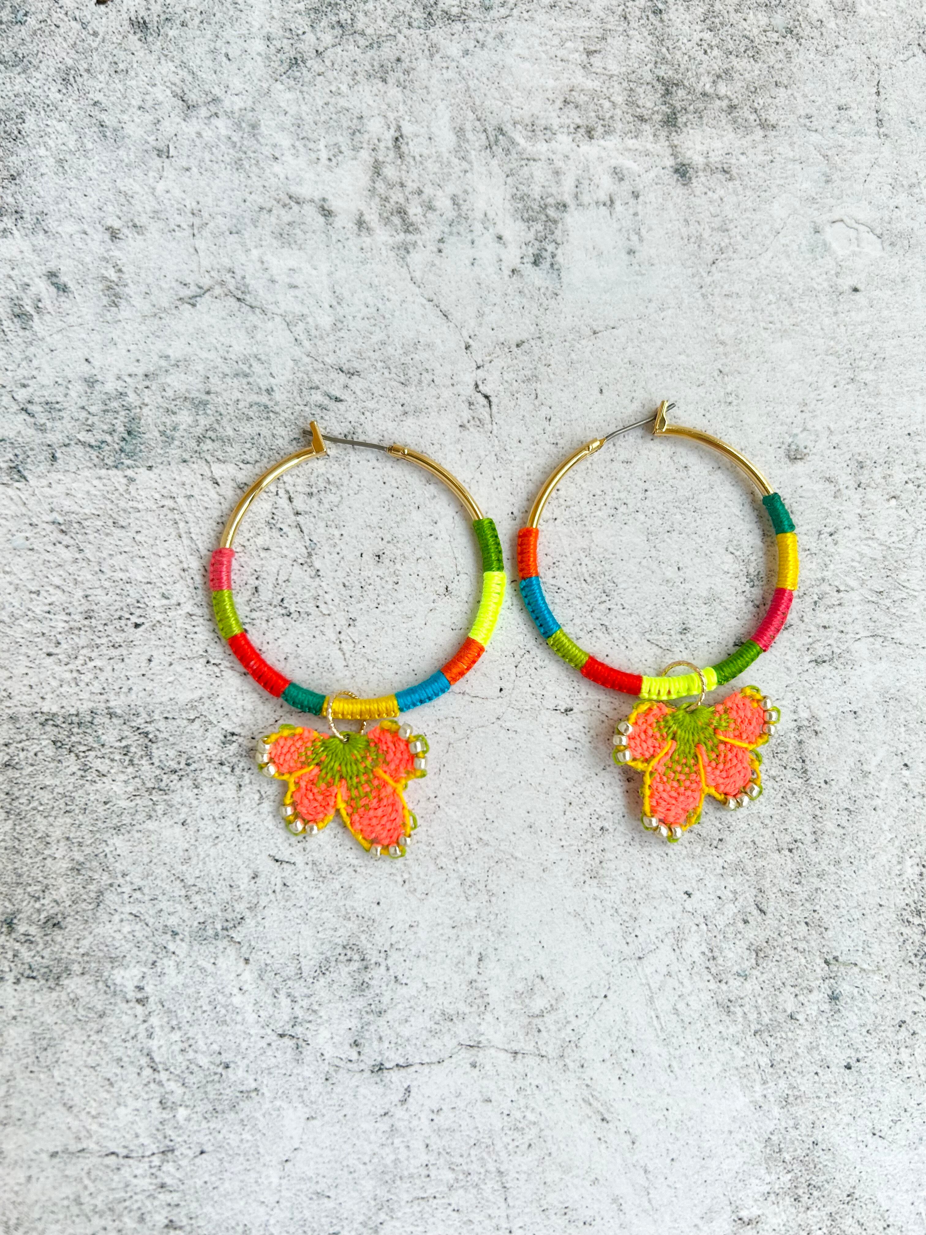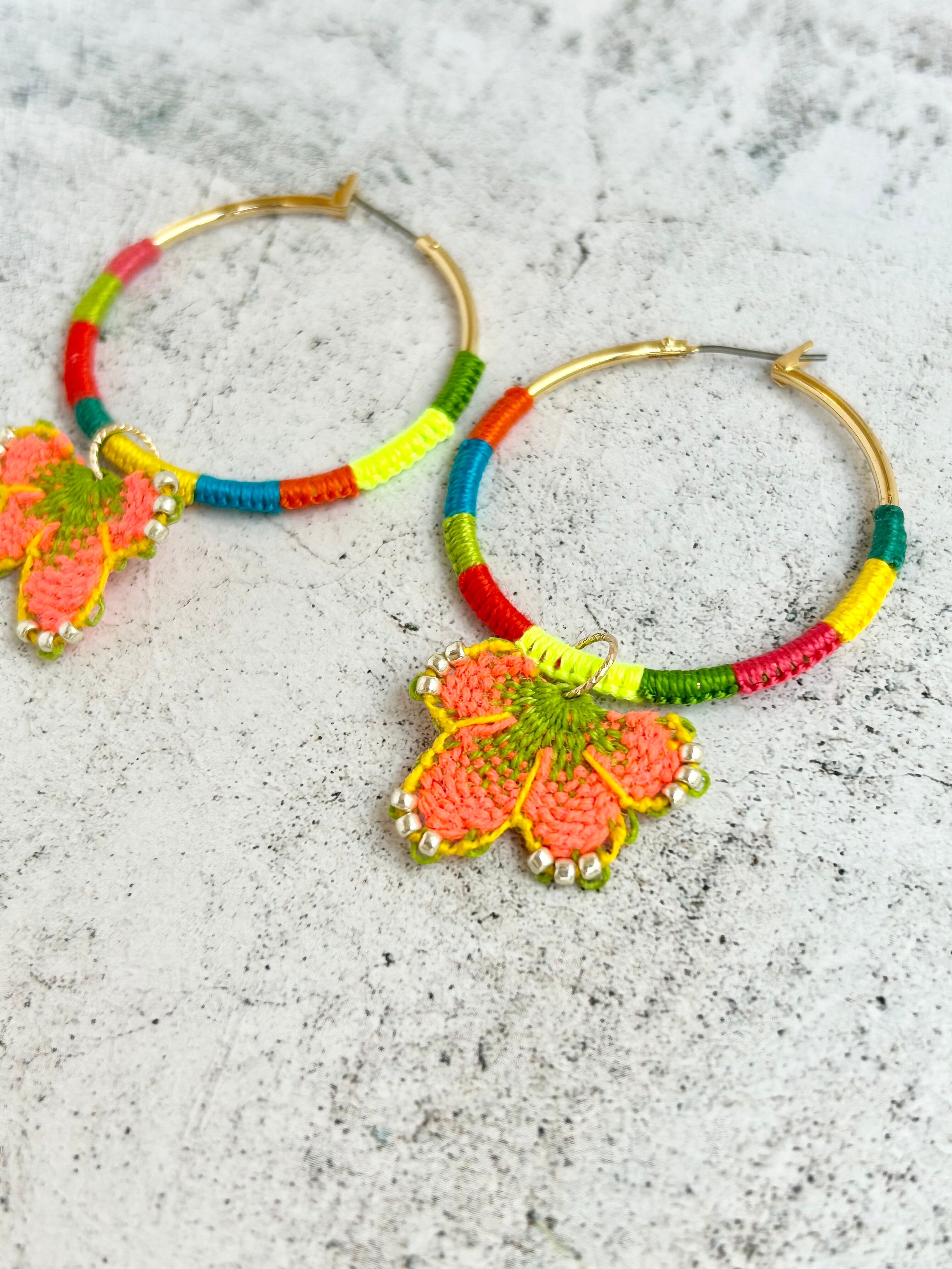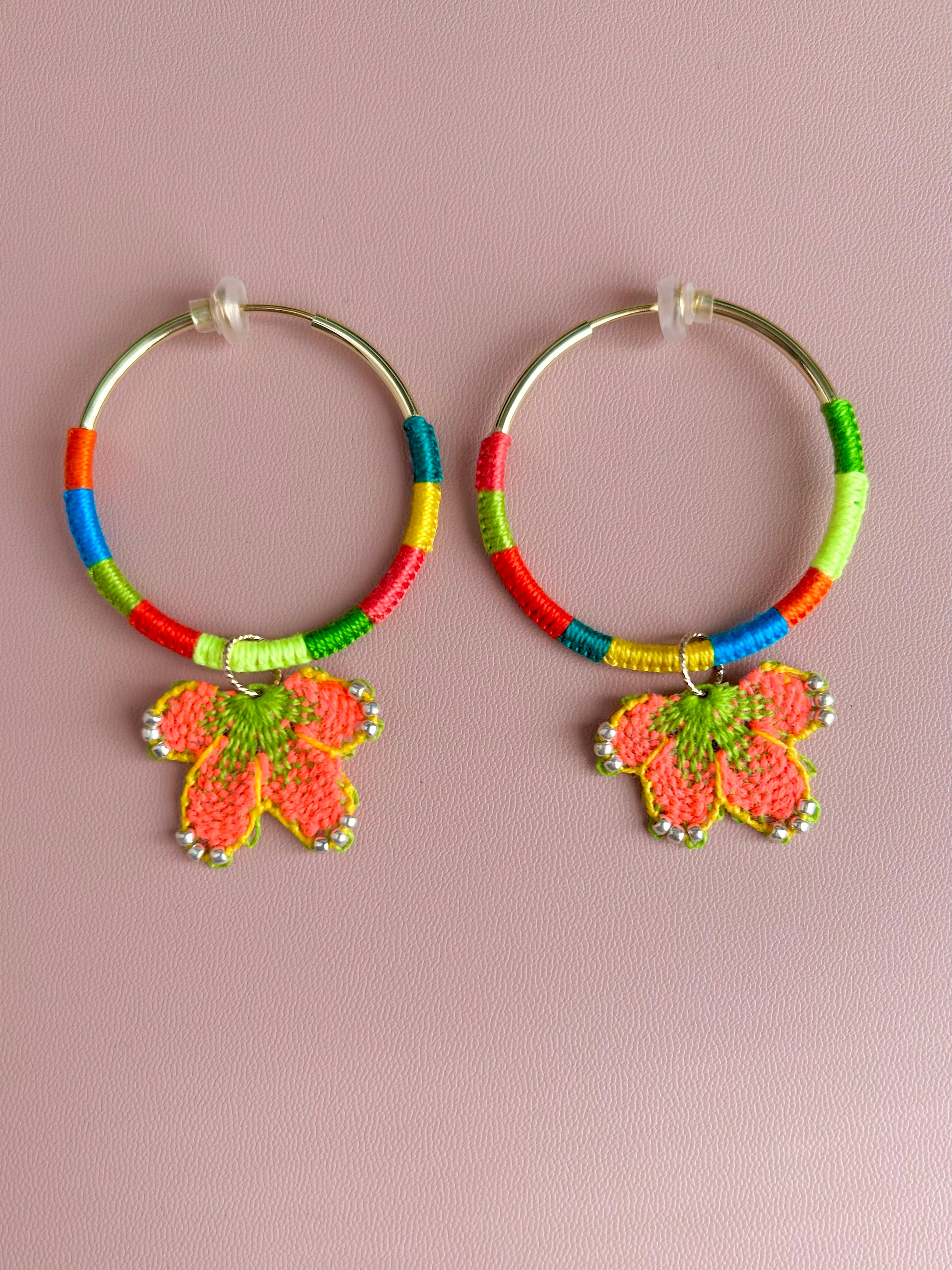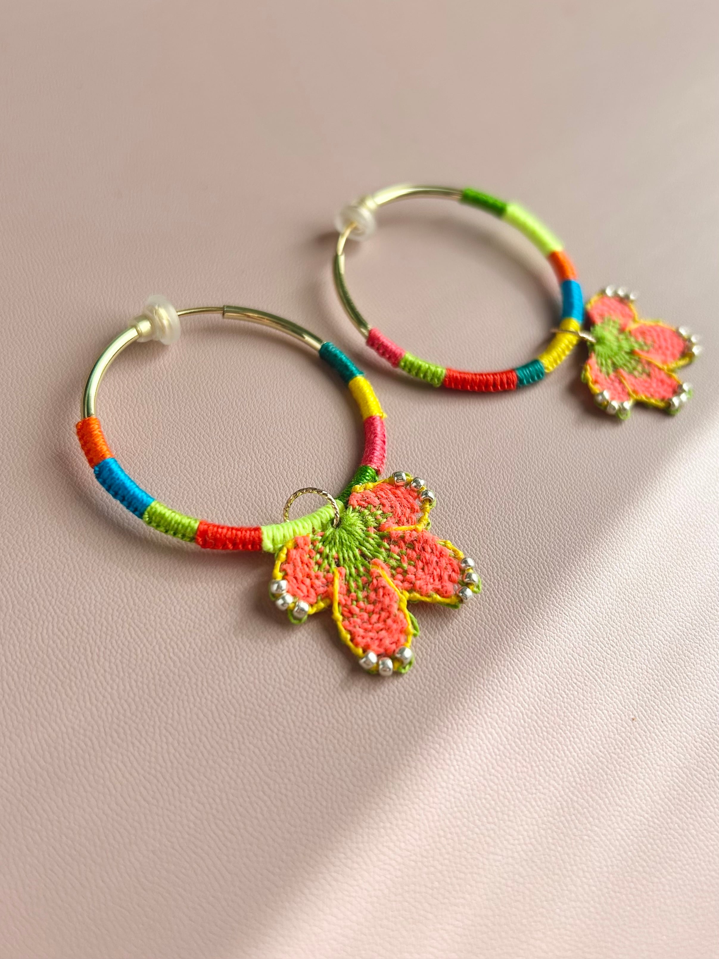 フープ金具もカラフルな糸で彩られて存在感たっぷりです。