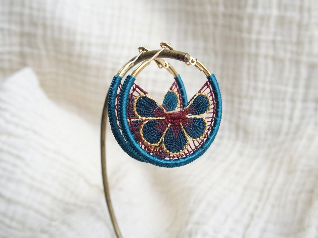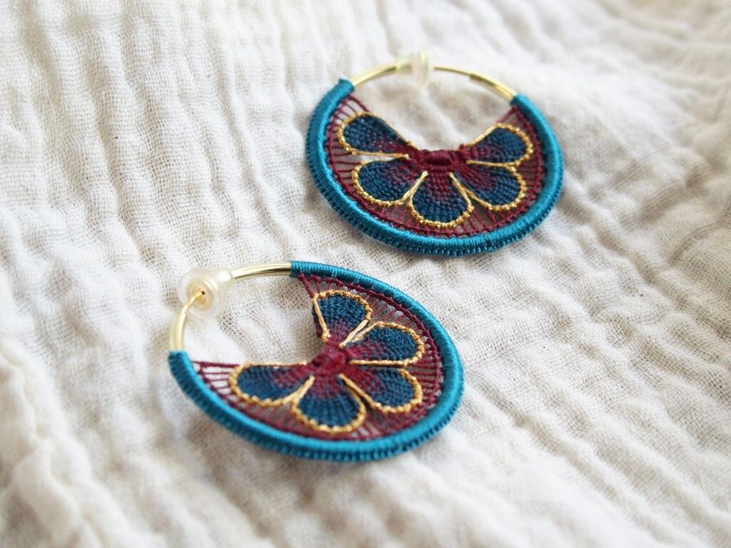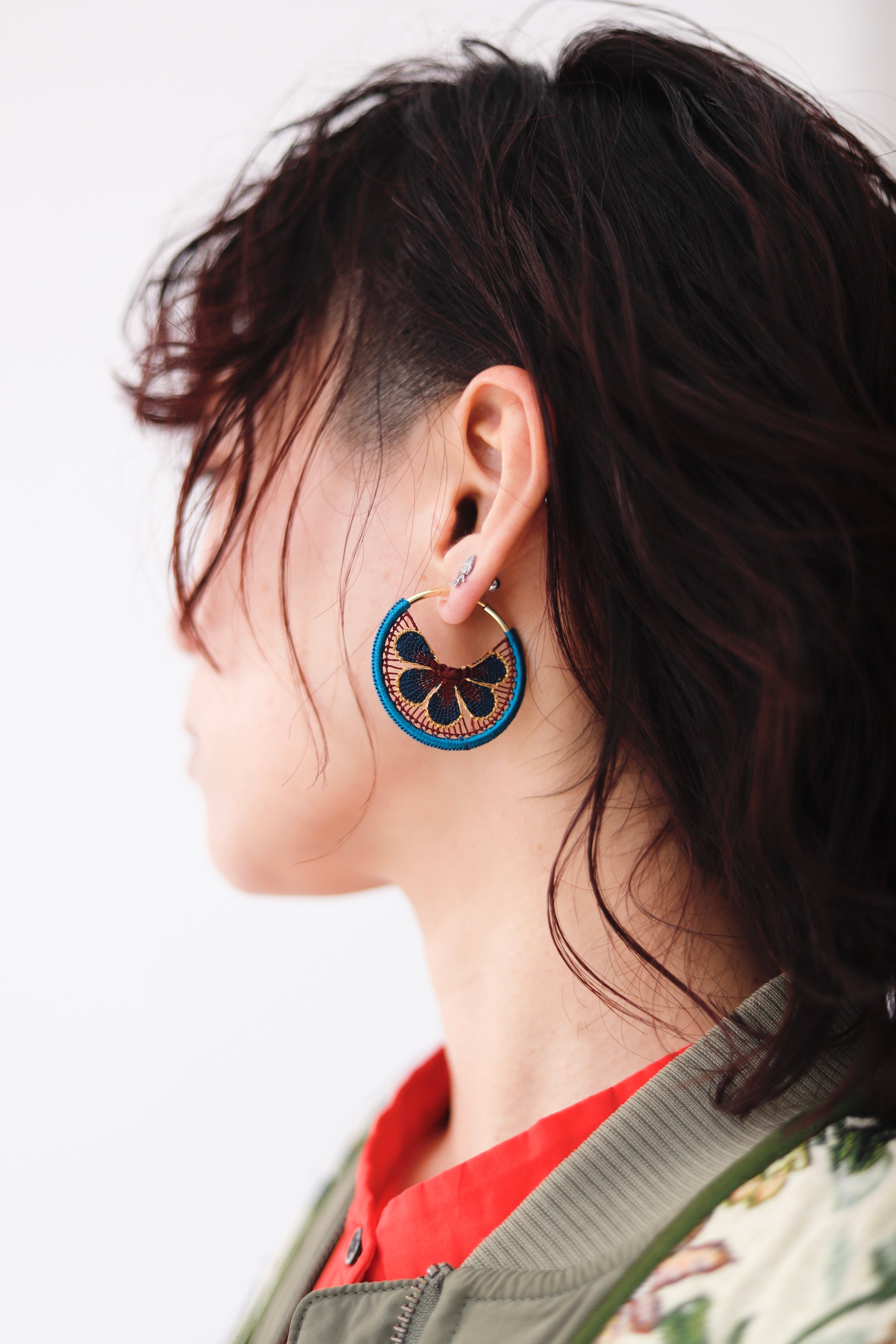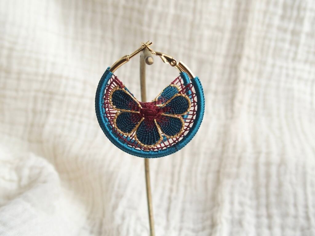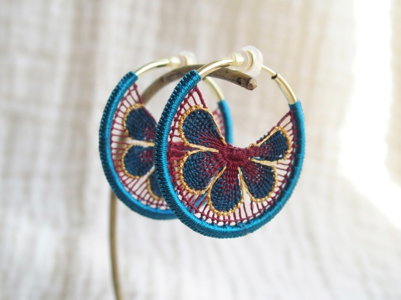 パラグアイ伝統刺繍"ニャンドゥティ"とフープ金具を組み合わせたmingleオリジナルのデザインです。