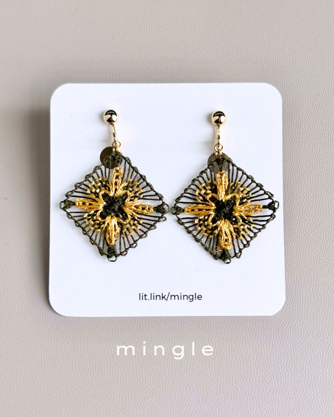 〈SPARK〉conpass rose イヤリング/ピアス(khaki×gold)