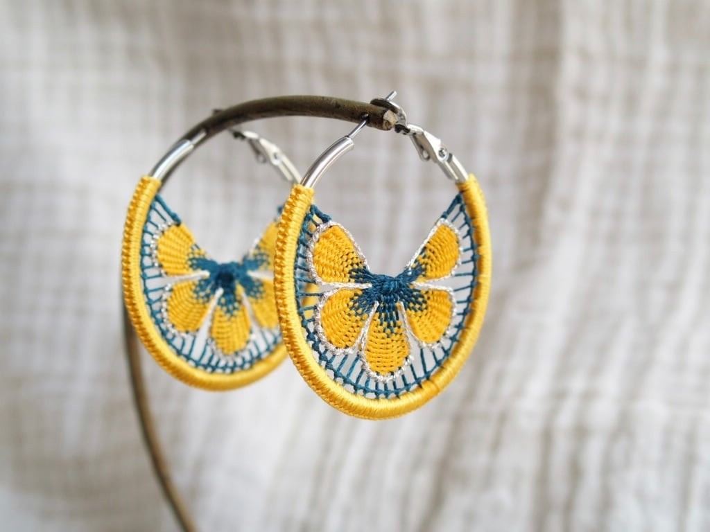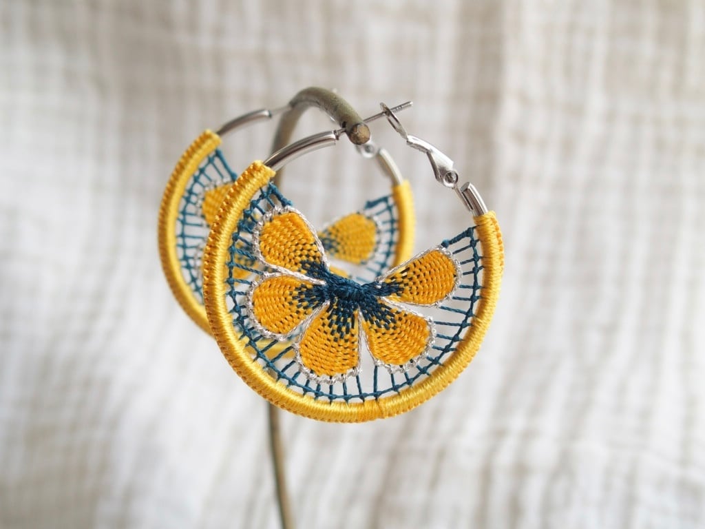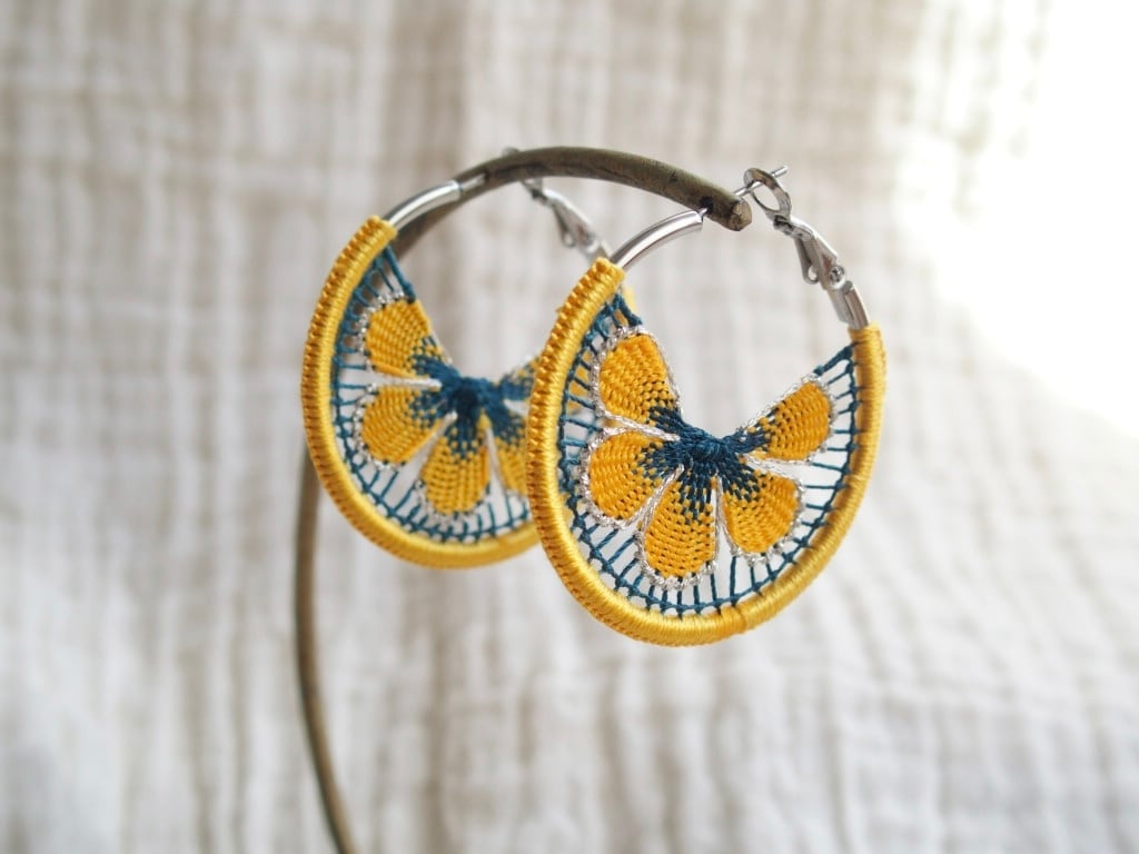 パラグアイ伝統技法“ニャンドゥティ“とフープ金具を組み合わせたmingleオリジナルのデザインのアクセサリーです。
